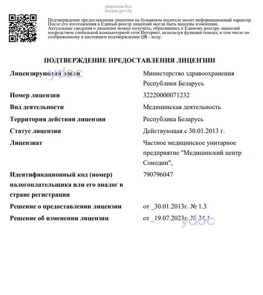 Медицинский центр «Сонодин» — многопрофильное учреждение, оказывающее широкий спектр медуслуг взрослым и детям. Клиника использует новейшее оборудование от ведущих мировых производителей. В штате центра свыше 60 сотрудников. Более 30 врачей имеют высшую и первую квалификационную категорию. Медорганизация обеспечивает комплексный подход к каждому пациенту. Учреждение работает с понедельника по пятницу с 8:00 до 20:00, в субботу — с 8:00 до 17:00, воскресенье — выходной. Есть онлайн-запись на приём 24/7.