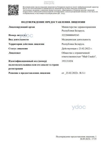 Стоматология «Май Смайл», Минск: 7 врачей, отзывы о клинике и ее врачах, телефон, официальный сайт, адрес - Минск, ул. Первомайская, д. 8.