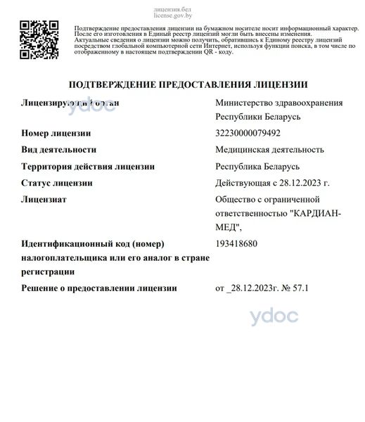 Медицинский центр «Кардиан-мед» — многопрофильное учреждение, оказывающее широкий спектр медицинских услуг по профилактике, диагностике и лечению, а также реабилитации. Кардиологическое направление является одним из основных в деятельности медорганизации. В клинике ведут приём врачи первой и высшей категорий, кандидаты и доктора медицинских наук. Центр располагает современным оборудованием, специалисты применяют новые методики лечения и обследования. Врачи регулярно проходят обучение, повышают квалификацию, участвуют в республиканских и международных обучающих мероприятиях. В медучреждении осуществляется индивидуальный подход к каждому пациенту.