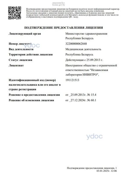 Иностранное общество с ограниченной ответственностью «Независимая лаборатория ИНВИТРО»