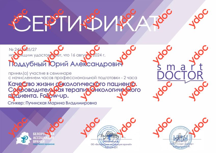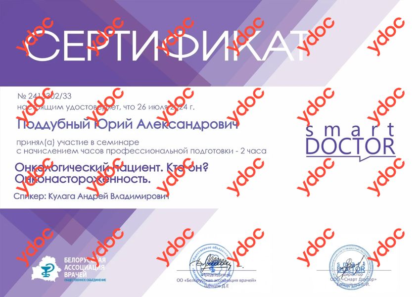 Поддубный Юрий Александрович, Минск: онколог, отзывы пациентов, места работы, стаж 6 лет.