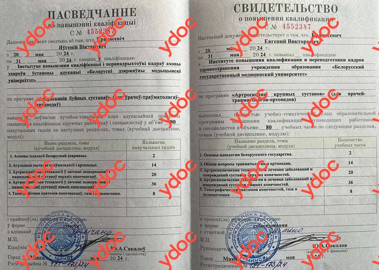«Артроскопия крупных суставов», Институт повышения квалификации и переподготовки кадров здравоохранения учреждения образования «Белорусский государственный медицинский университет»