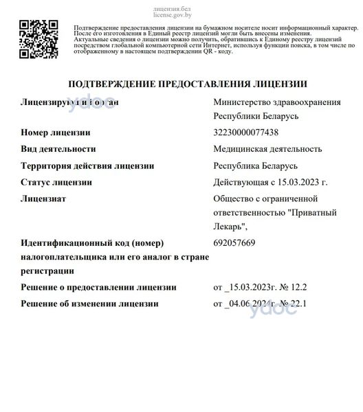 Медицинский центр «Приватный лекарь» Солигорск